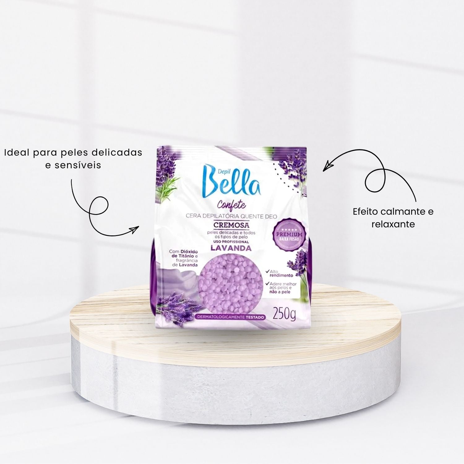 - 01 – Cera Depilatória Depil Bella Confete Lavanda Hidratação 250 g