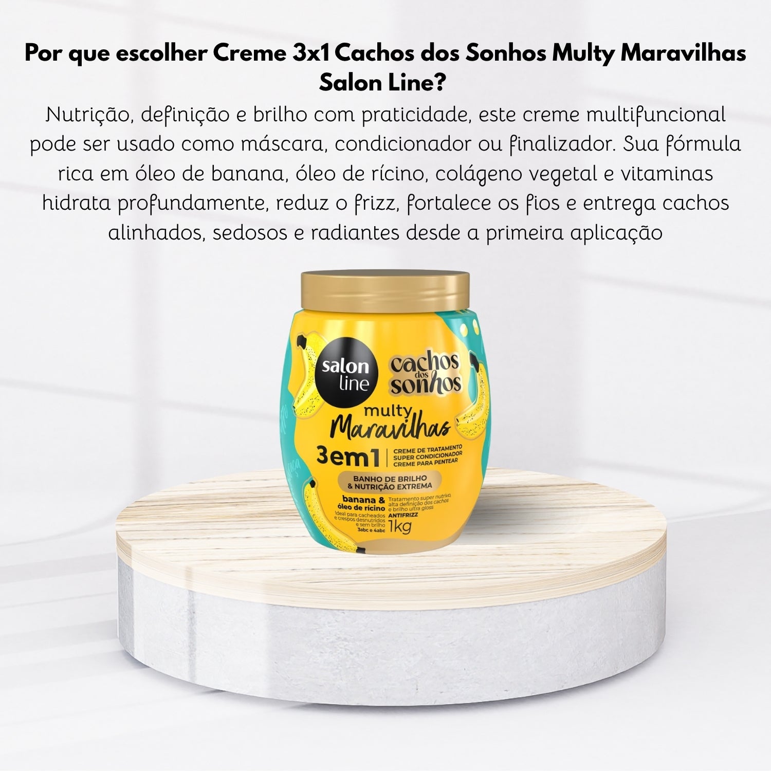 Creme de Pentear Salon Line Cachos dos Sonhos Banana Multy 3 em 1 Creme para Cabelo Cacheado 1 Kg é um cuidado para cabelos pensado para entregar desempenho na rotina, com foco no que a categoria promete (Creme de Pentear e Leave-In).