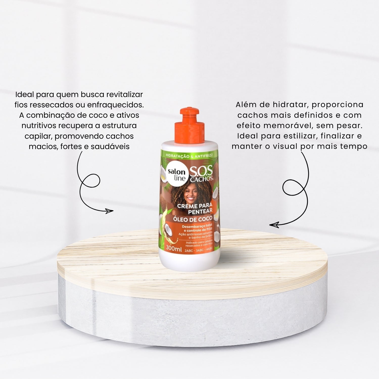 Creme de Pentear Salon Line S.O.S Cachos Oleo de Coco para Cabelo Cacheado 300 ml é um cuidado para cabelos pensado para entregar desempenho na rotina, com foco no que a categoria promete (Creme de Pentear e Leave-In).