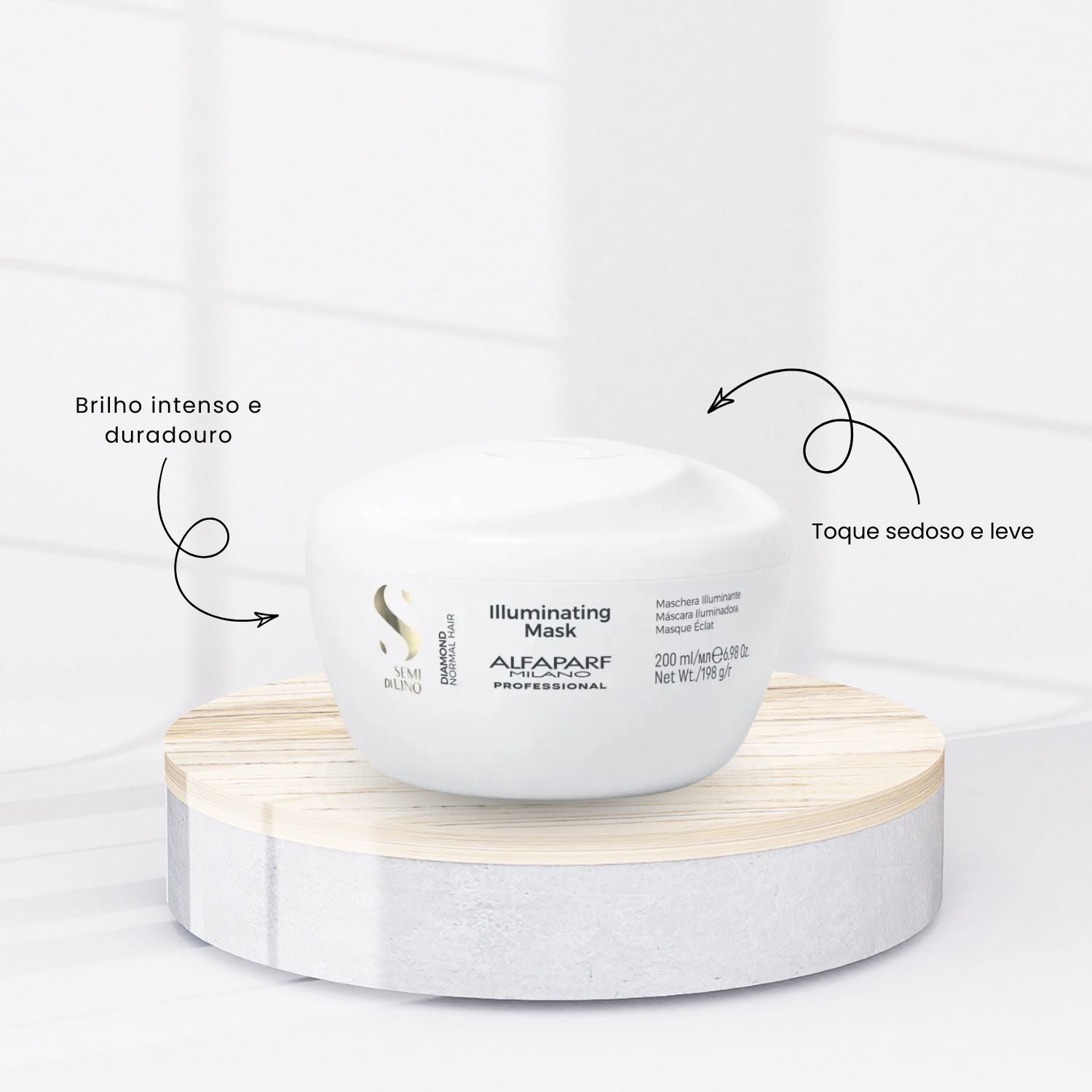 - Tecnologia profissional Alfaparf: atua na fibra capilar promovendo cuidado direcionado conforme a necessidade do fio.