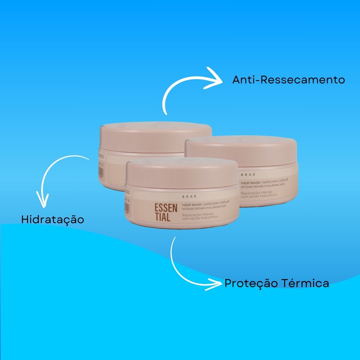- 01 – Kit Braé Essential 3 Máscara Capilar Reparação Intensa 200 g