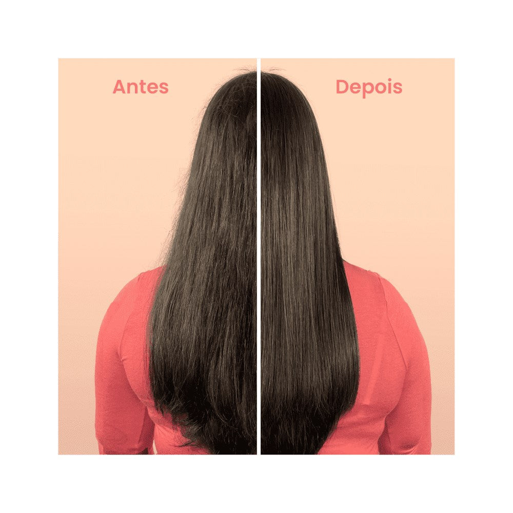 Após o primeiro uso, espere fios mais macios, com toque sedoso e aparência mais alinhada. Com o uso contínuo, a fibra tende a ficar mais uniforme, o frizz visual diminui e o brilho aparece com mais intensidade, mantendo movimento natural.