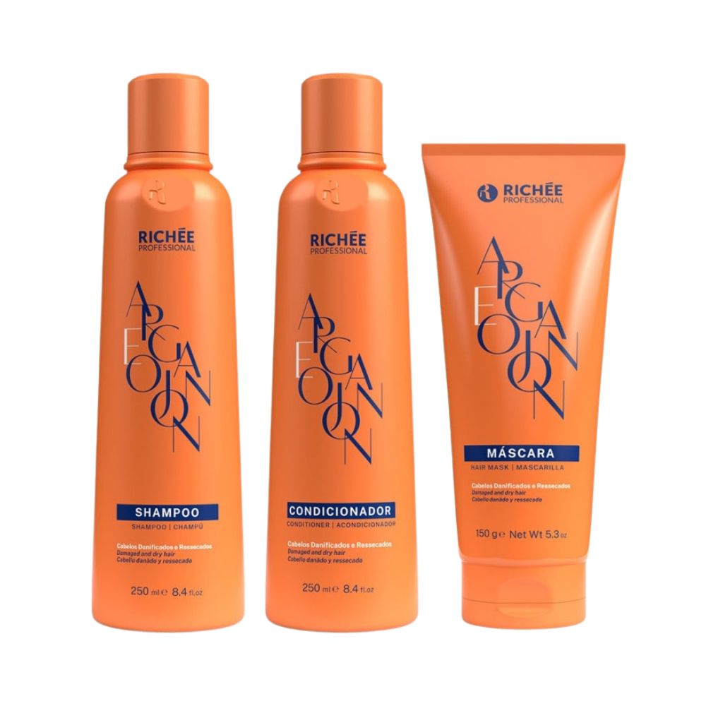 - 01 – Kit Richée Argan e Ojon Shampoo 250 ml + Condicionador 250 ml + Máscara 150 g