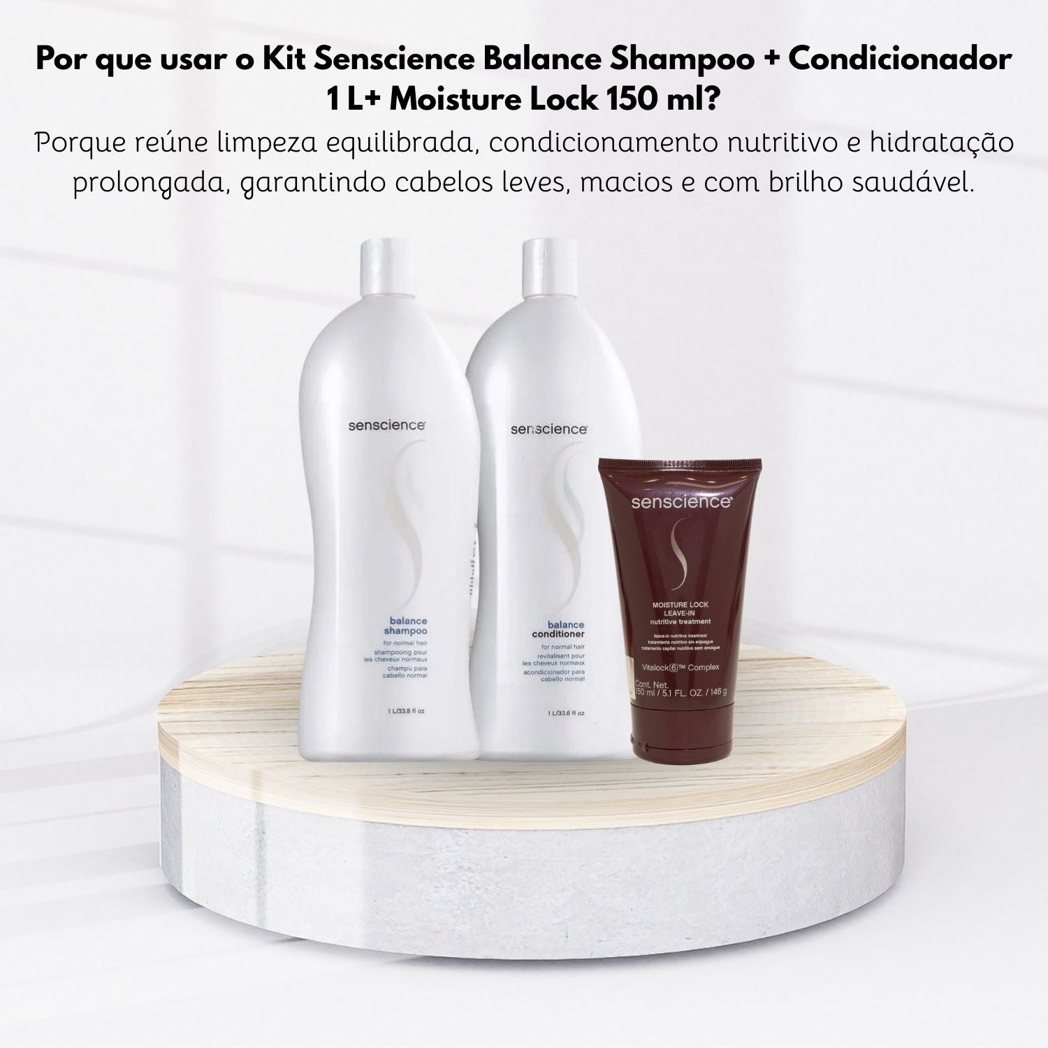 - 01 – Kit Senscience Balance Shampoo + Condicionador 1 Litro + Moisture Lock 150 ml