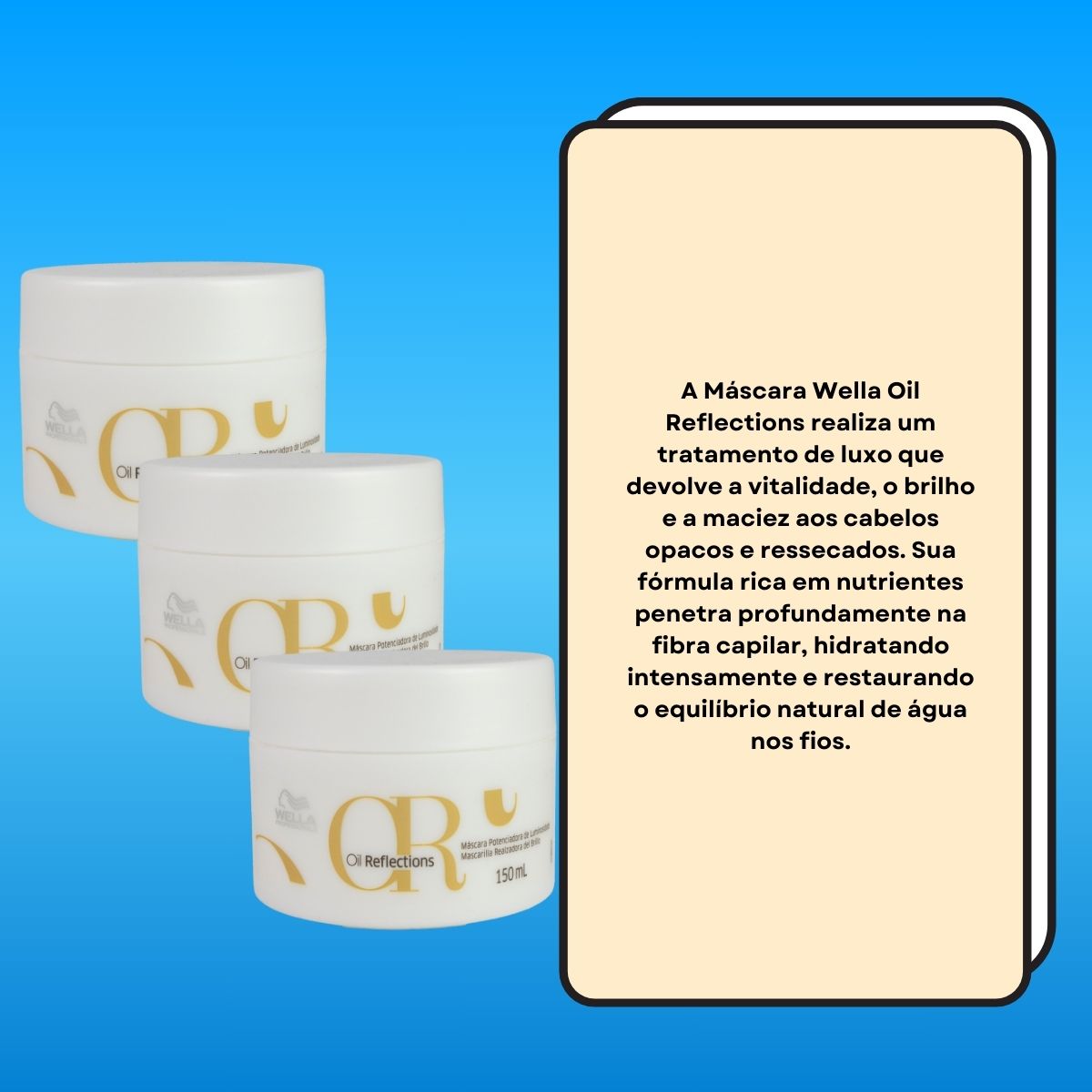 O Kit Wella Professionals Oil Reflections Máscara Capilar foi desenvolvido para promover nutrição intensa e hidratação profunda, ajudando a restaurar a estrutura dos fios e realçar o brilho natural do cabelo. Sua fórmula atua reduzindo a perda de água da fibra capilar, mantendo os fios mais saudáveis, macios e luminosos.