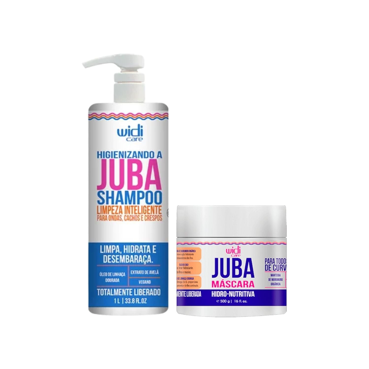 O Kit Widi Care Juba Shampoo 1 Litro e Máscara Hidro Nutritiva 500 g é um produto para Cabelos da Widi Care, desenvolvido para tratamento e performance no dia a dia, alinhado à proposta da linha Juba.