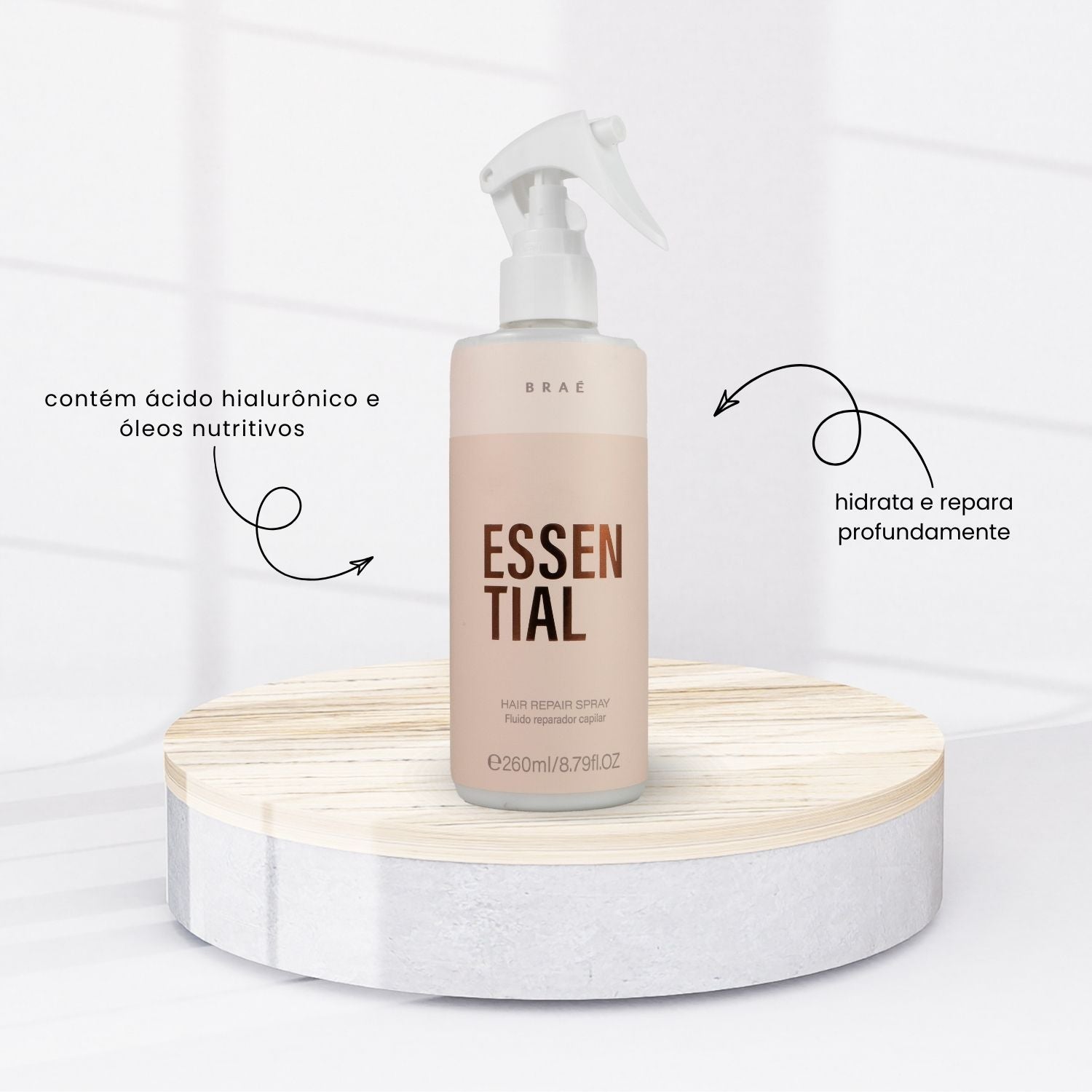 - 01 – Leave-in Braé Essential Spray Fluido Reparador Capilar 260 ml