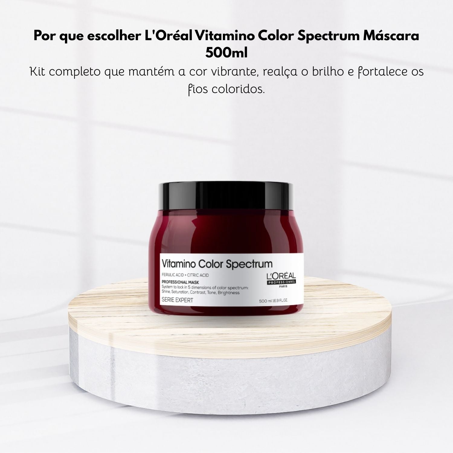 O Máscara Loreal Vitamino Color Spectrum 500 ml foi desenvolvido para oferecer tratamento profissional com performance avançada, promovendo melhoria visível na qualidade da fibra capilar conforme a proposta da linha L’Oréal Professionnel.