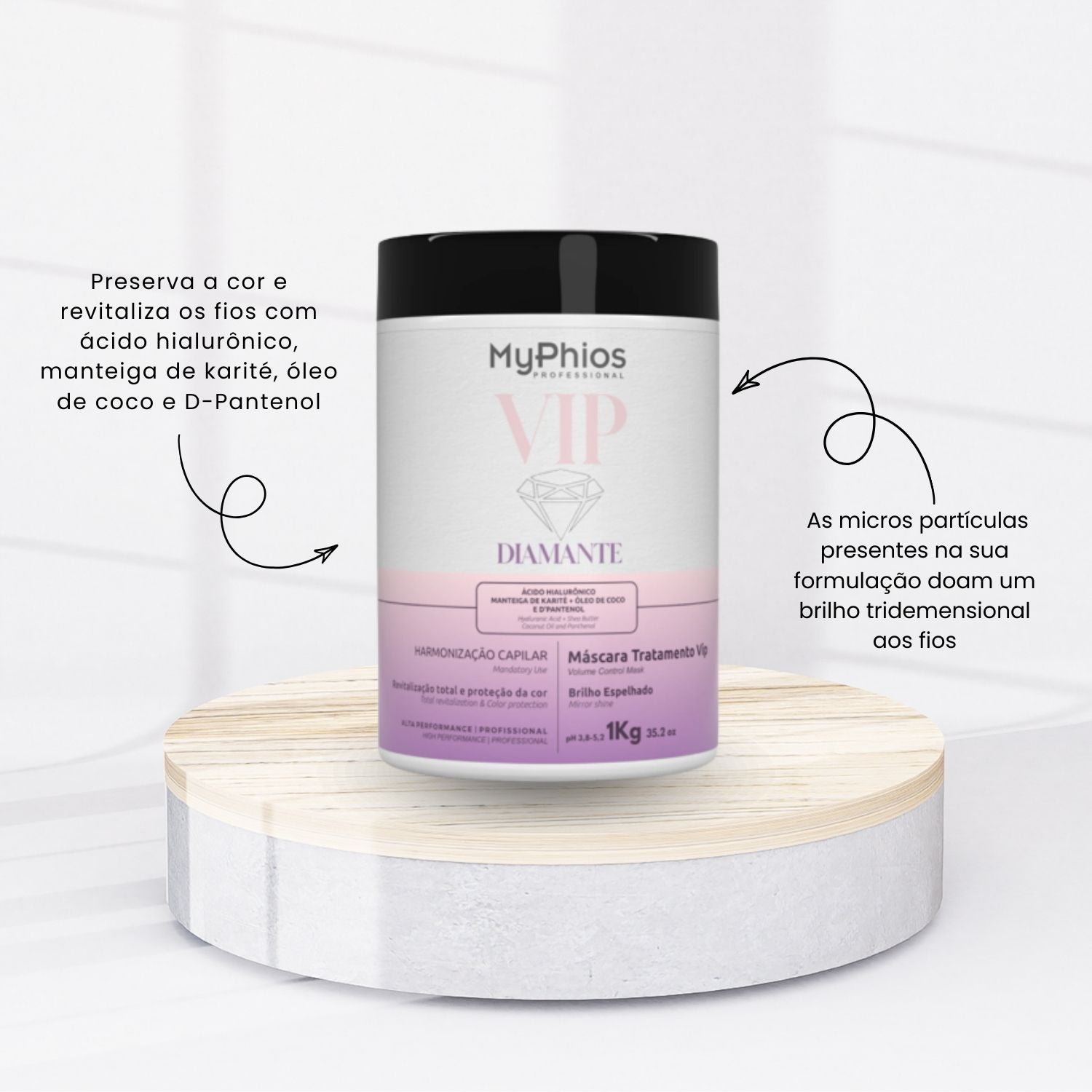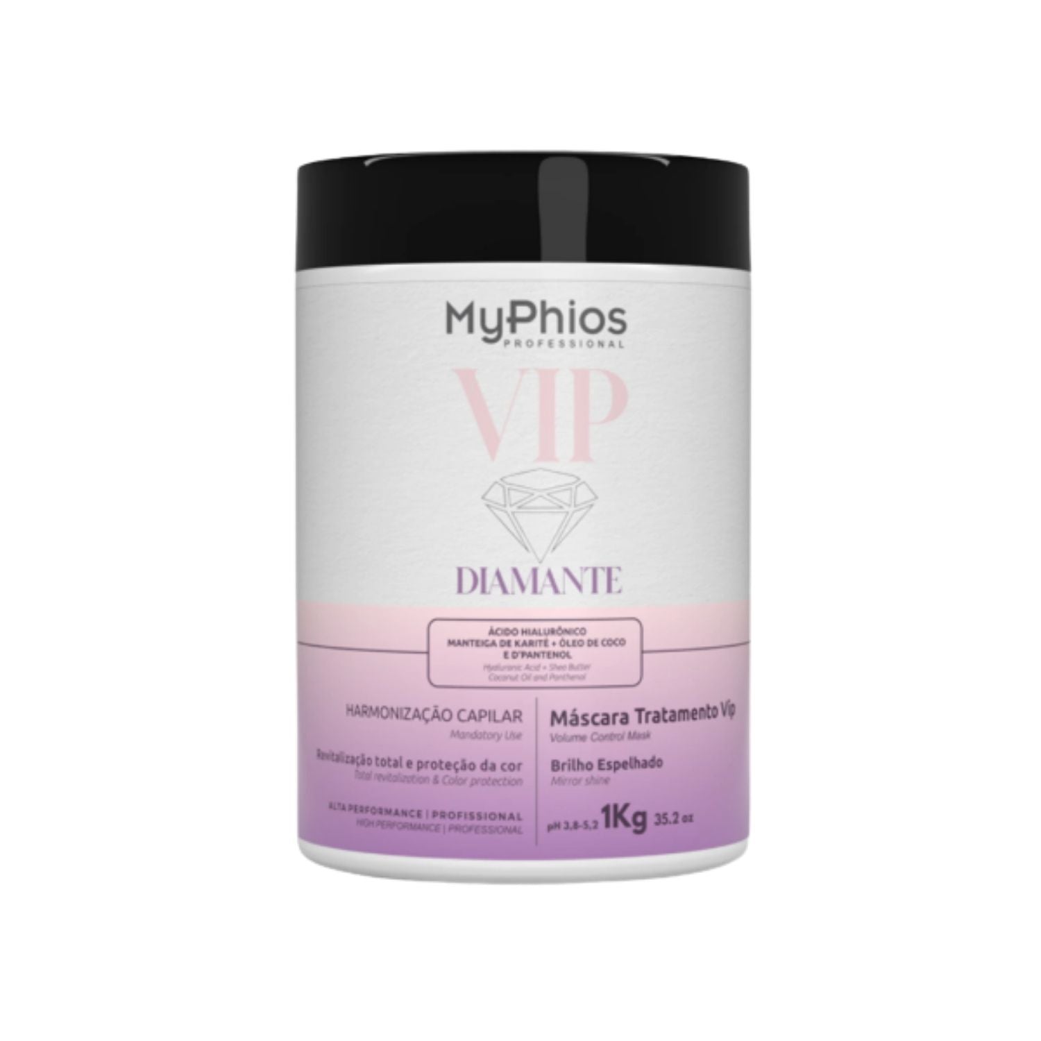 Máscara MyPhios VIP Diamante Máscara de Hidratação e Brilho Intenso 1 Kg é desenvolvido para auxiliar no cuidado capilar, promovendo tratamento, alinhamento e melhora da aparência dos fios.