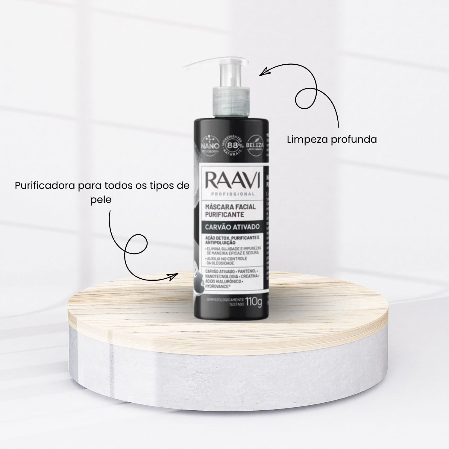 Máscara Raavi Facial Carvão Controle Oleosidade 110 g é um produto de skincare desenvolvido para promover controle de oleosidade, ajudando a melhorar a aparência e o conforto da pele.