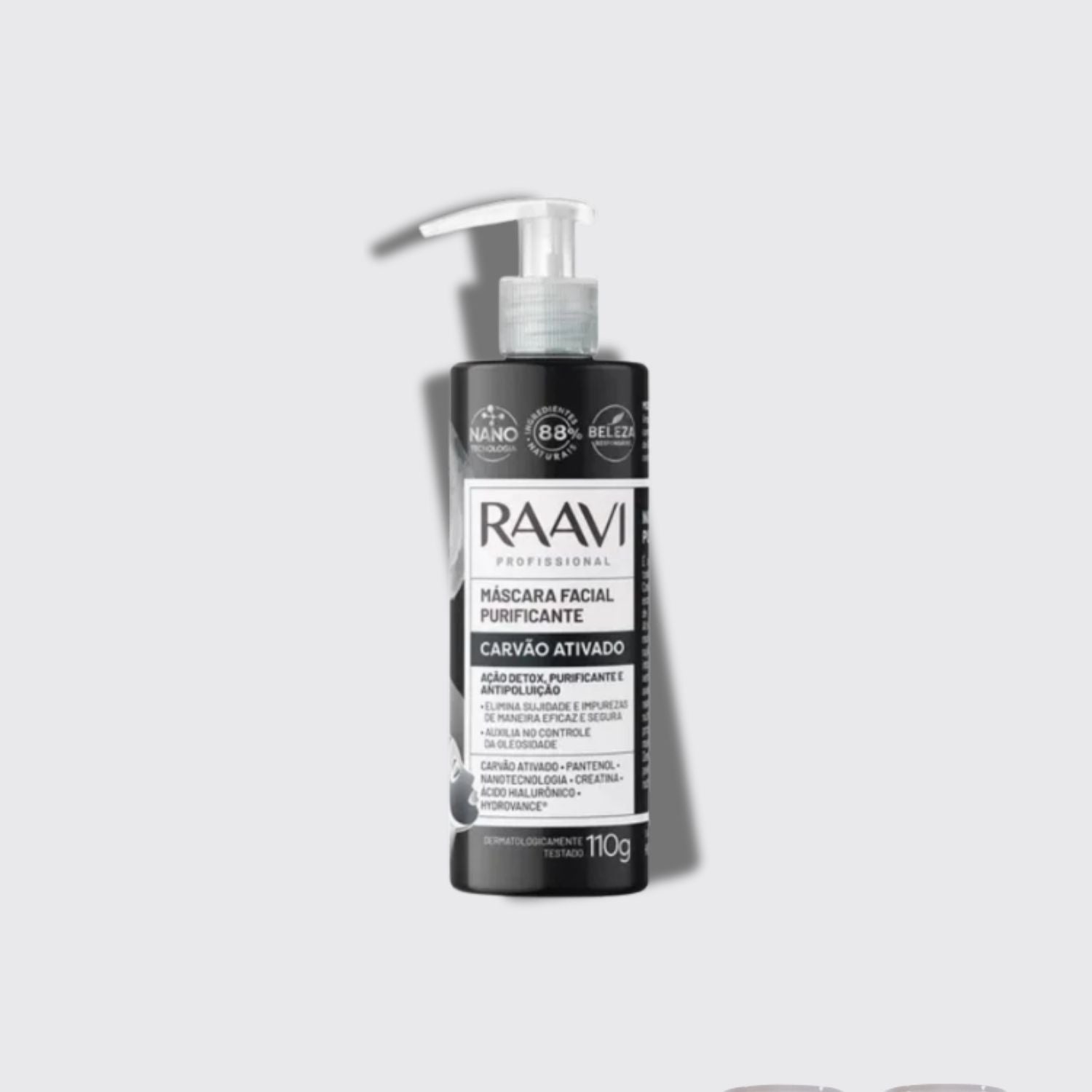 - 01 – Máscara Raavi Facial Carvão Controle Oleosidade 110 g