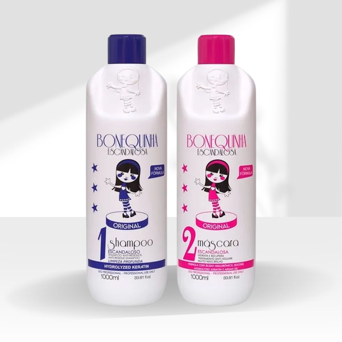 O tratamento Antifrizz Bonequinha Escandalosa é a combinação perfeita do que há de melhor. Sua fórmula é composta pela junção de Queratina Hidrolisada, Óleos de Macadâmia, Argan e Ojon, agentes ricos em propriedades emolientes com alto poder de ação hidratante e nutritiva, todos juntos a um conjunto de ativos antioxidantes com alto poder de alisamento. Bonequinha Escandalosa possui alto rendimento e aplicação rápida. O resultado é um cabelo liso, mais resistente, brilho e balanço.