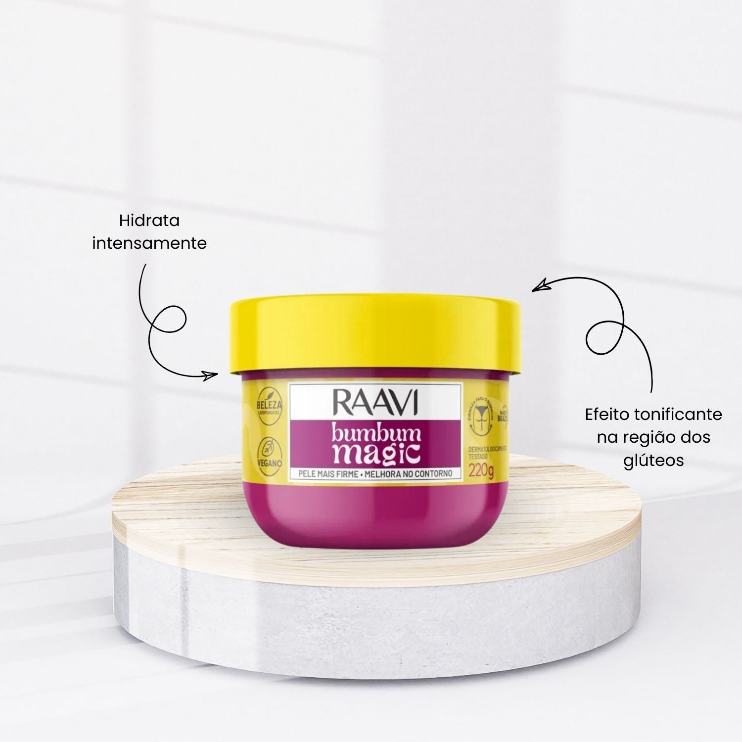 Raavi Bumbum Magic 220 g é um produto de skincare desenvolvido para promover tratamento geral de pele, ajudando a melhorar a aparência e o conforto da pele.
