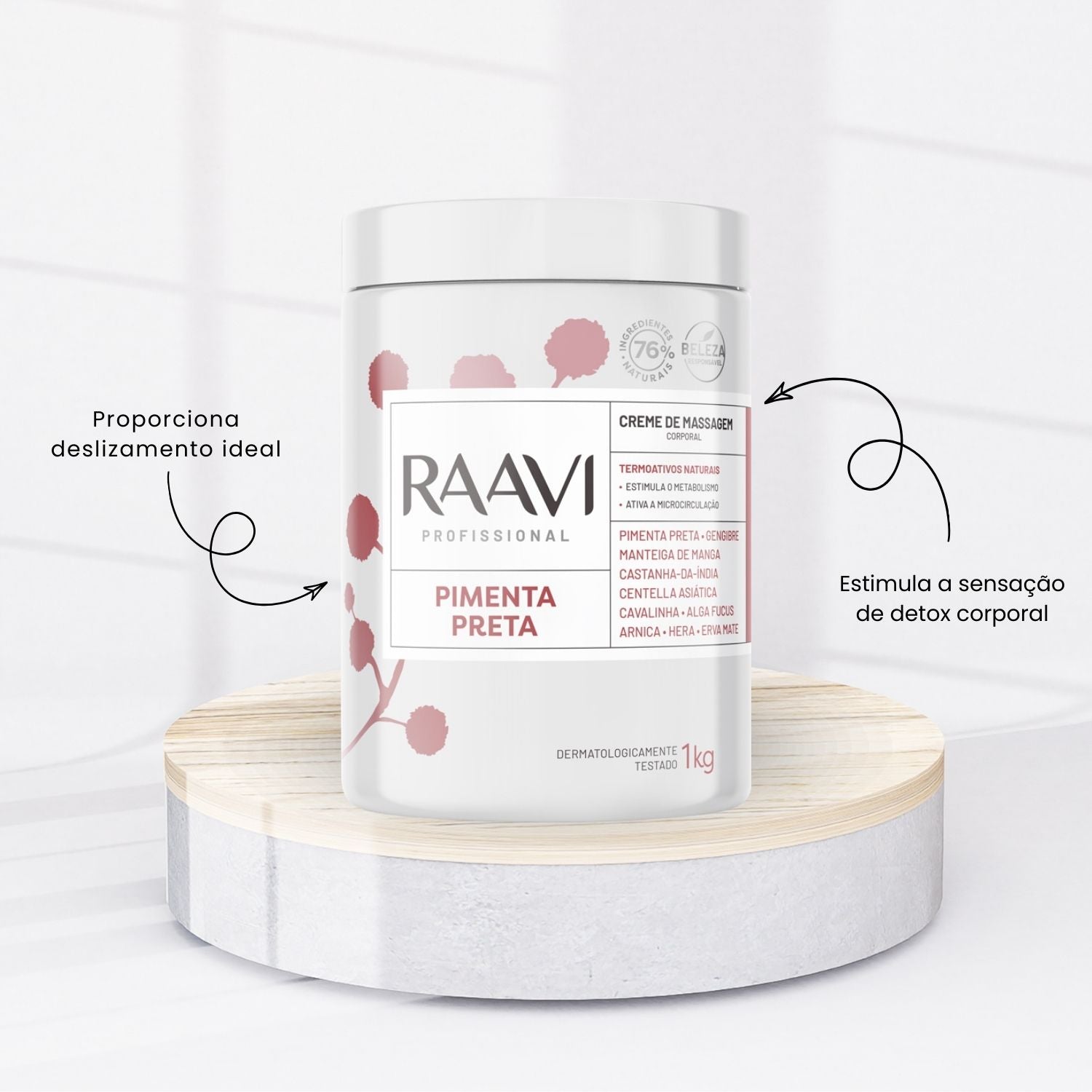 - 01 – Raavi Creme de Massagem Corporal Pimenta Preta 1000 g
