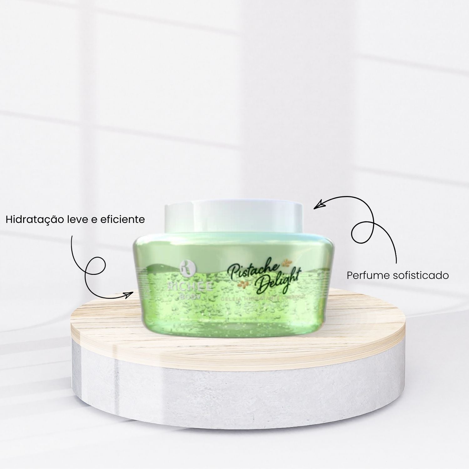 - Geleia Hidratante Corporal Pistache Richée: prolonga a hidratação e a perfumação.