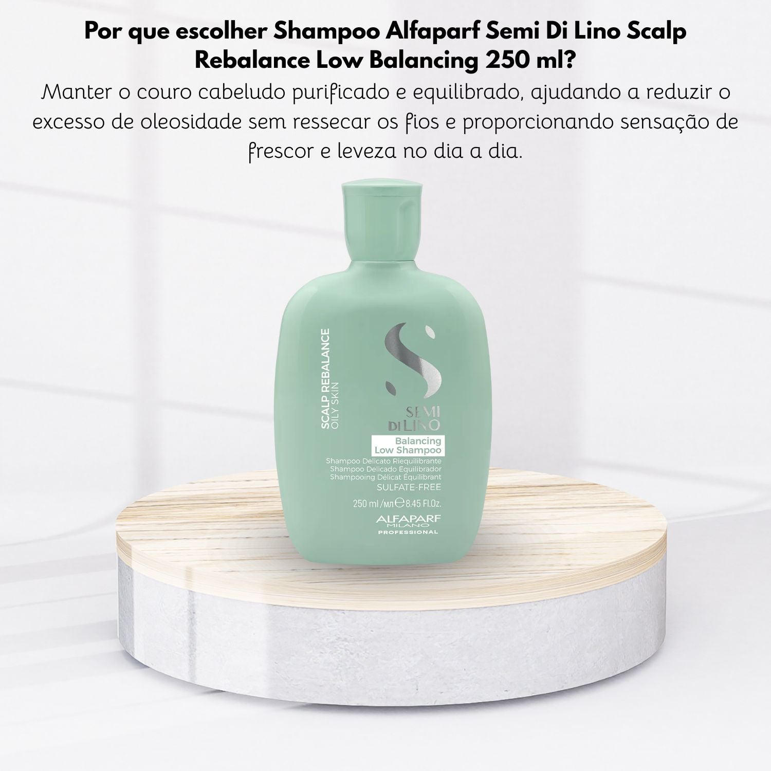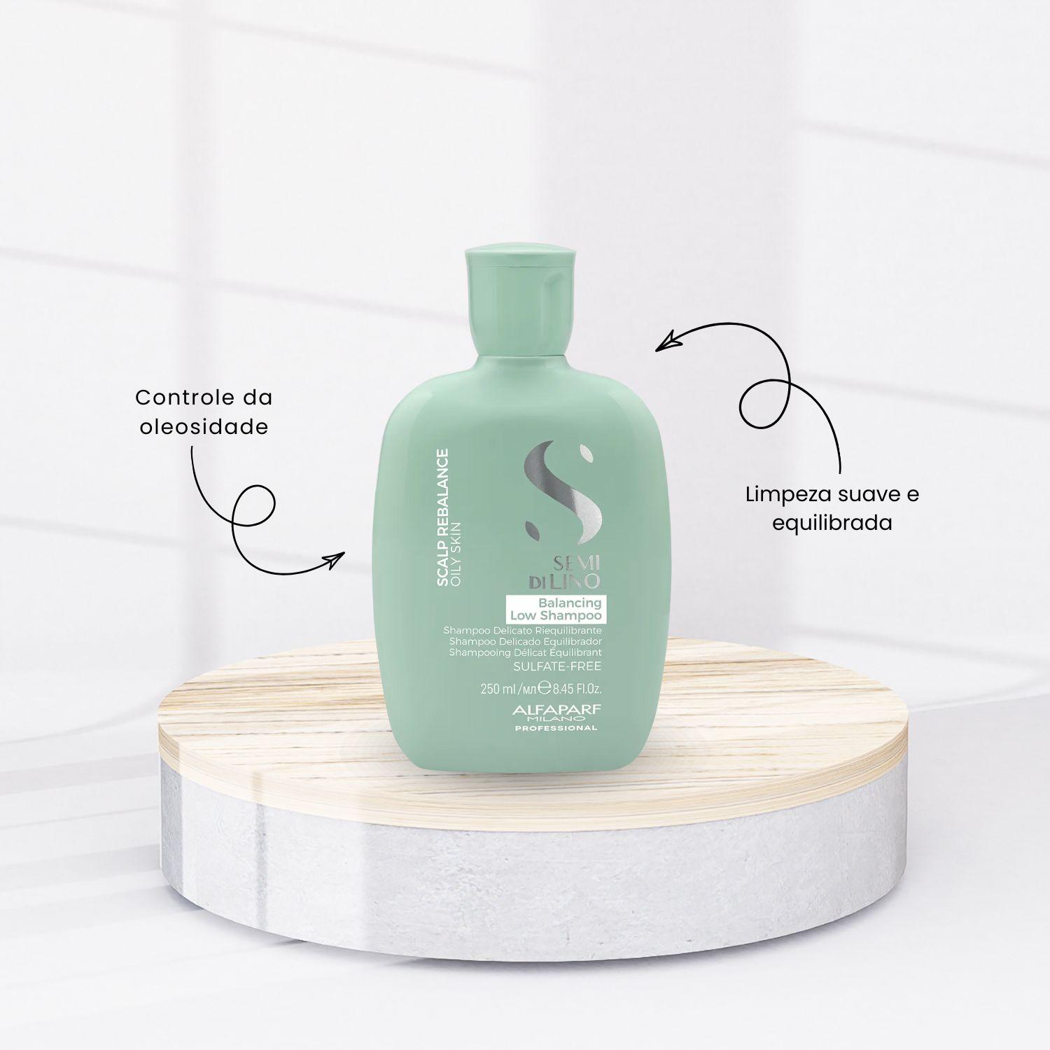 Shampoo Alfaparf Semi Di Lino Scalp Balancing revitaliza, reduz a oleosidade e previne os danos causados pelo stress e a poluição, que podem ocasionar comichão, vermelhidão, caspa, queda de cabelo temporária, produção excessiva ou insuficiente de sebo.