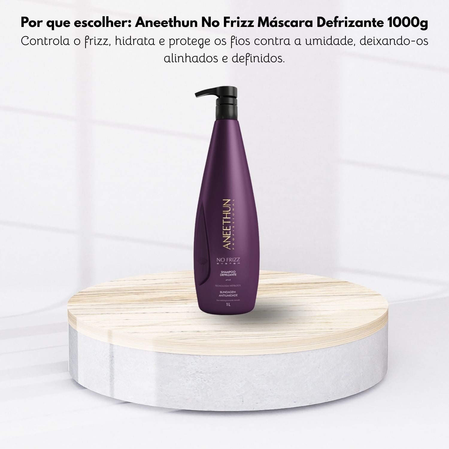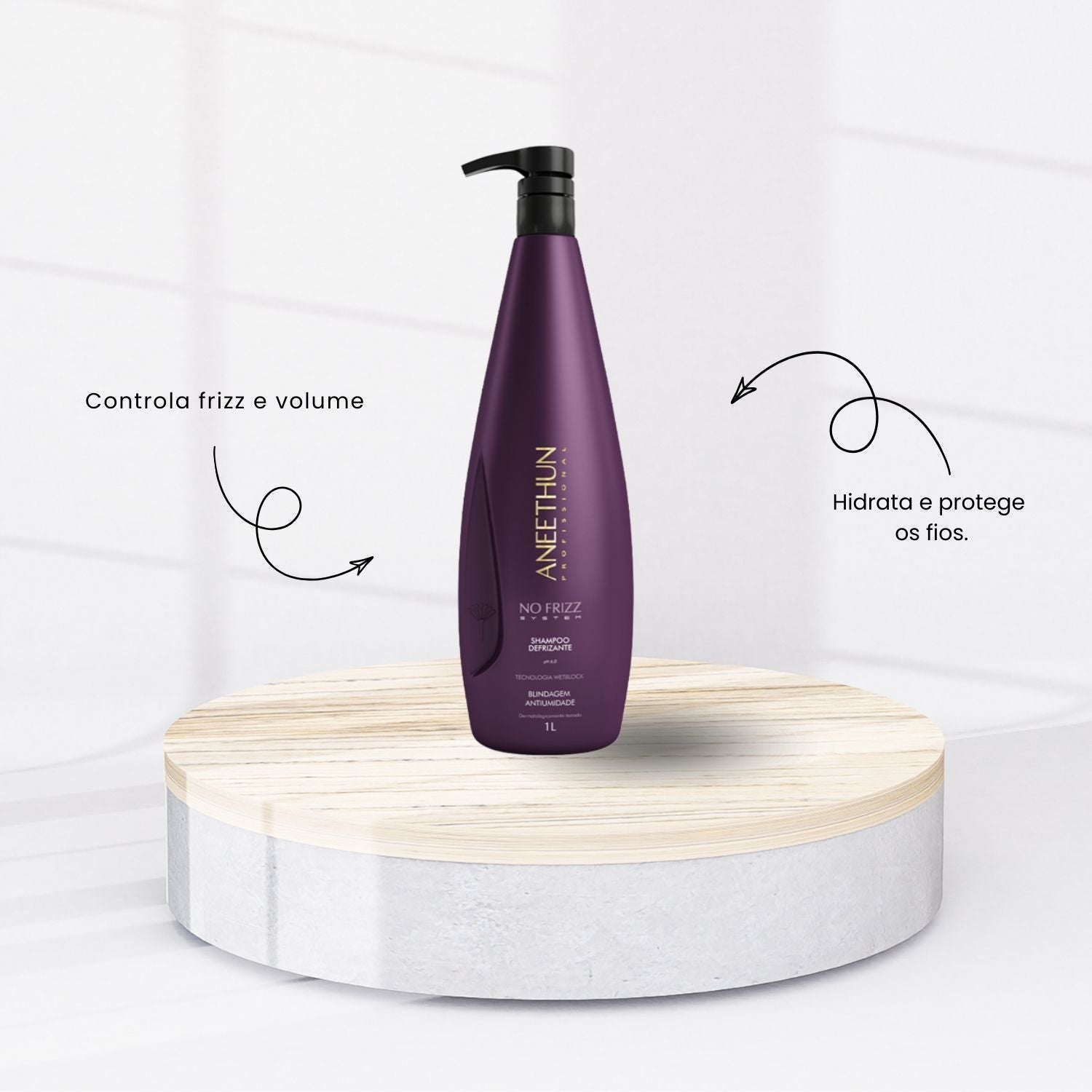 Aneethun No Frizz Shampoo Defrizante 300ml limpa delicadamente, promovendo um toque suave e sem pesar. Desenvolvido para disciplinar os fios, auxilia no combate ao frizz e ao volume indesejado, graças à sua fórmula com tecnologia antiestática Wetblock. Com pH 6,0, equilibra a carga estática dos fios e os envolve em um escudo protetor de longa duração, blindando-os contra a umidade. Proporciona um acabamento mais definido e alinhado.