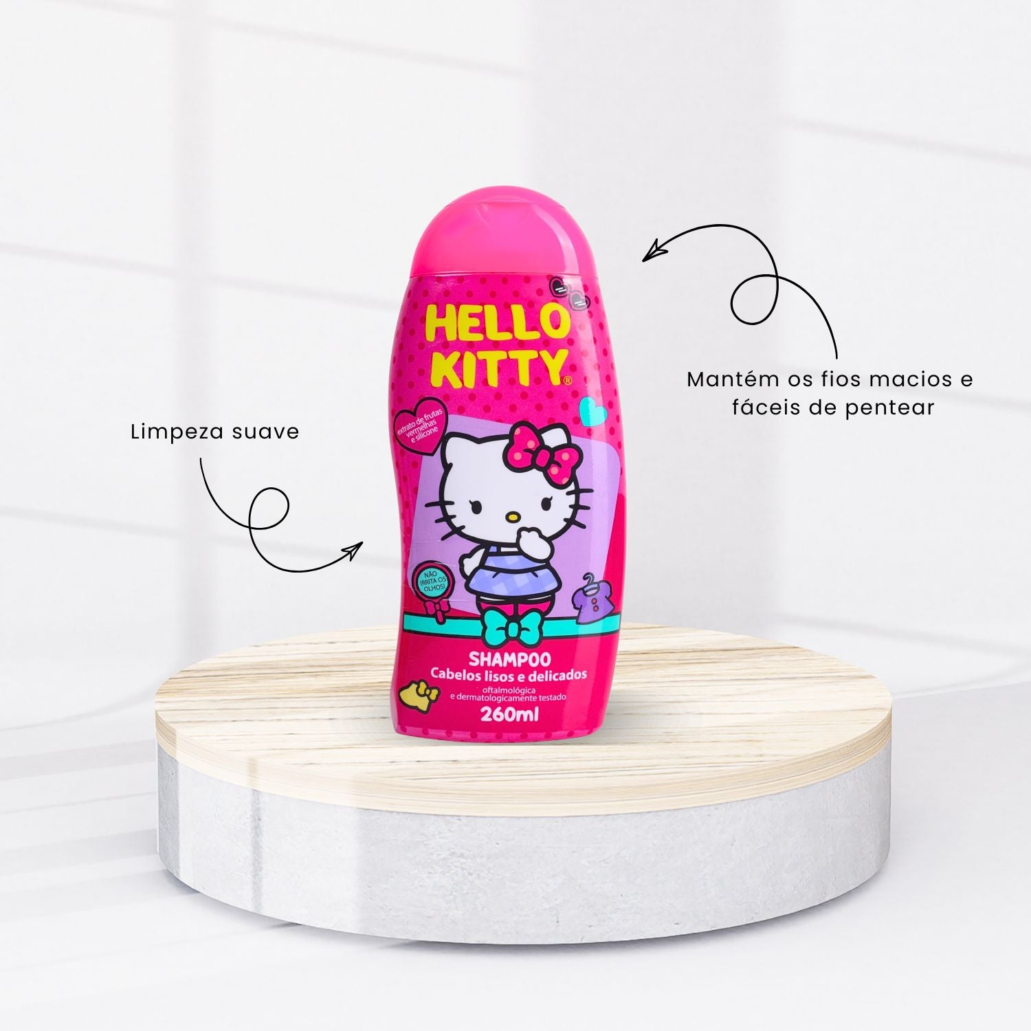 O Shampoo Cia da Natureza Cabelos Lisos e Delicados Hello Kitty 260 ml foi desenvolvido para promover uma limpeza suave e equilibrada, respeitando a delicadeza dos fios lisos. Sua fórmula ajuda a remover as impurezas do dia a dia sem agredir a fibra capilar, contribuindo para cabelos mais alinhados, leves e com toque macio. Ideal para uso frequente, mantém a sensação de frescor e cuidado a cada lavagem.