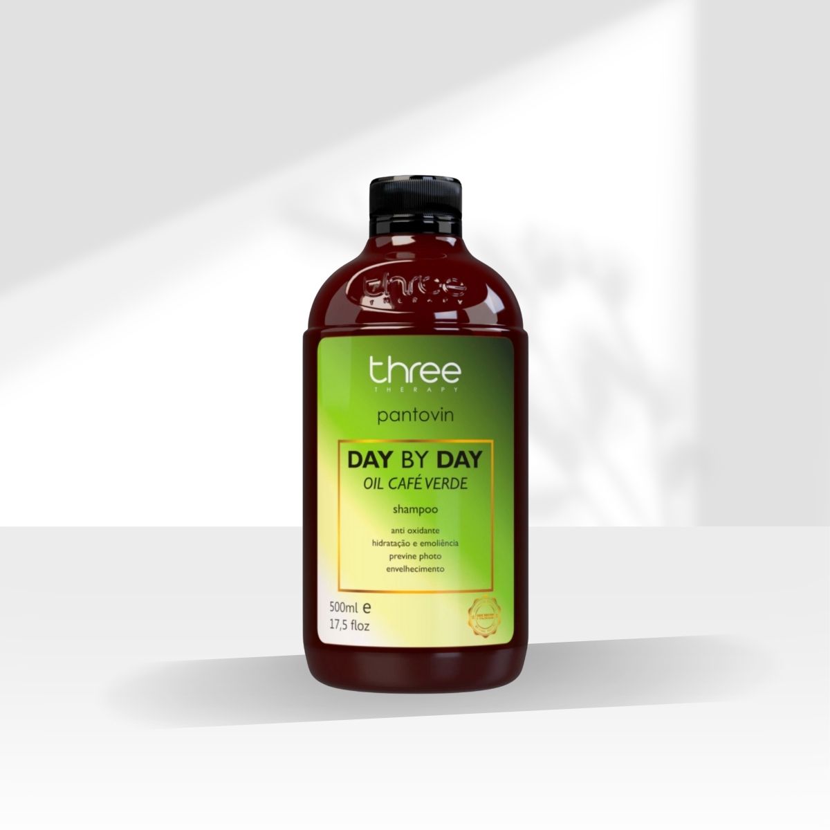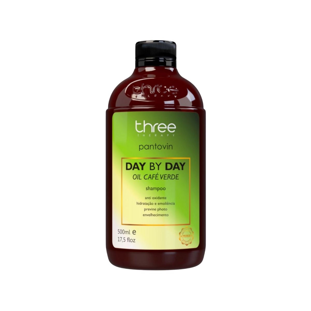 CTA: Inclua o Shampoo Three Therapy Day by Day Café Verde Oil 500 ml na sua rotina capilar e mantenha a constância para potencializar os resultados.