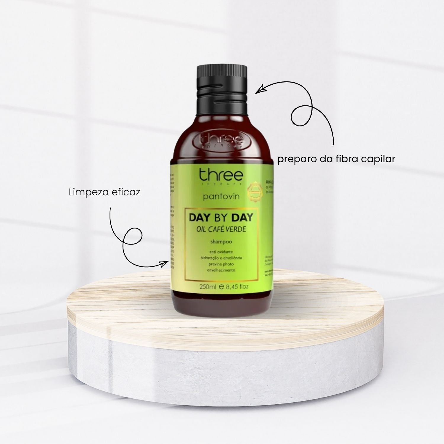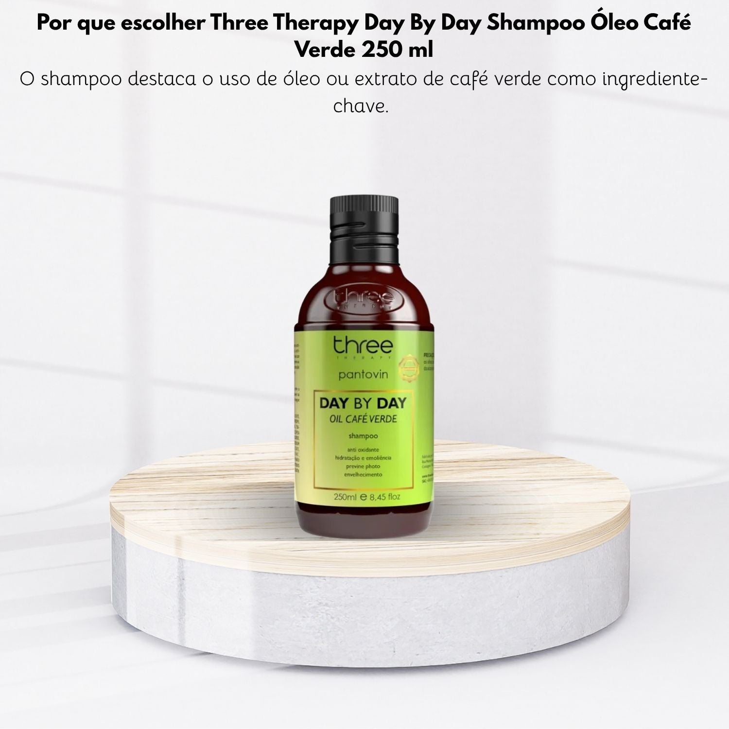 CTA: Inclua o Shampoo Three Therapy Day By Day Oleo Café Verde 250 ml na sua rotina capilar e mantenha a constância para potencializar os resultados.